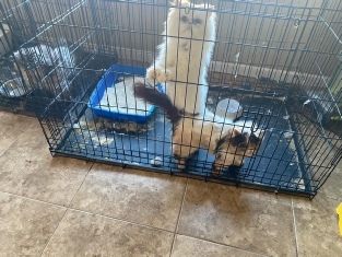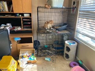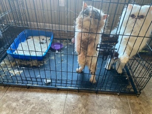 We think it is important for you to see the conditions these cats were living in when they were rescued. I hate to call it a hoarding situation, because people might feel sympathetic to the person and call her a victim with a mental illness. This was not the case in the least. This was a bad breeder. A person who collected cats (and dogs) and exploited them for money by breeding them incessantly and giving them little care and consideration. Yes, she was arrested; not only for animal abuse and neglect, but child neglect. She received one year in jail as a sentence, which is far too short a sentence for the damage she caused. Several animals were dead or died in her family’s care after she was arrested. Once she was arrested, the family refused to allow the cats to be rescued for months, hoping she would return to pick up her breeding program again. But once she was sentenced to jail time, the family abandoned the cats and left them in an empty, cold house. Fortunately, the dogs had been taken by Animal Control at the time of the breeder’s arrest, but Animal Control left the cats in the care of the family. Too many failures in this situation led to what we saw and what we are now trying to fix, not the least being Animal Control’s decision to leave the cats in the family’s control. The members of the family who were in charge are just as complicit in what happened. But make no mistake, the breeder, even from jail, was managing the movement of hiding these cats so she could take up her breeding practices once she was released from jail. She apparently did not take into account that she might be convicted.